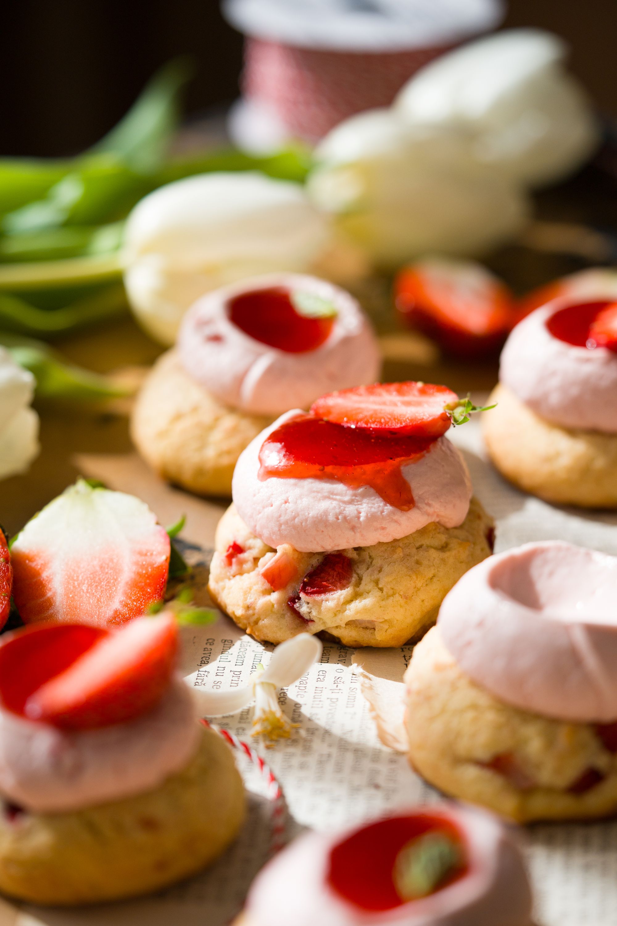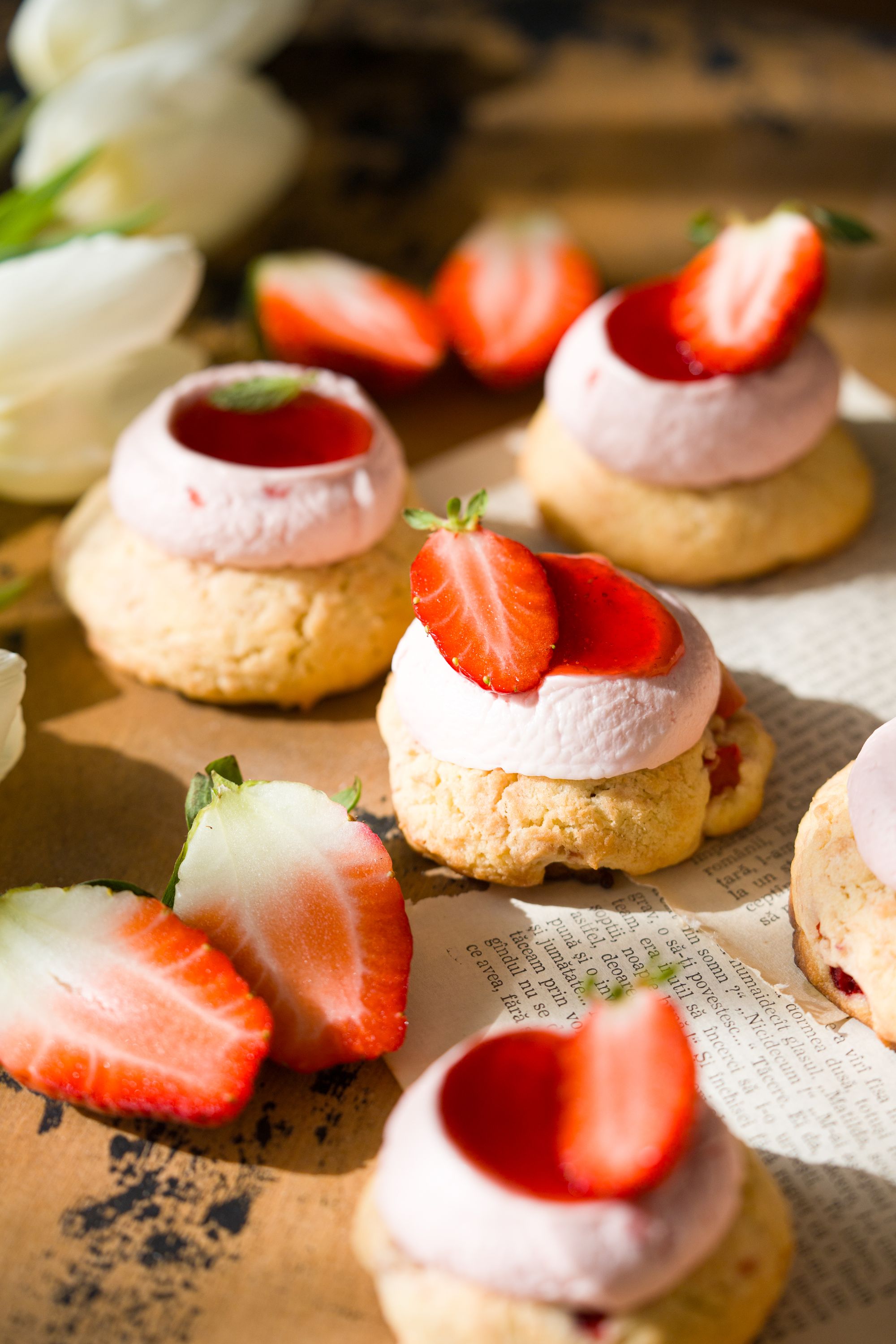 Biscuiți cu căpșuni și cremă de mascarpone