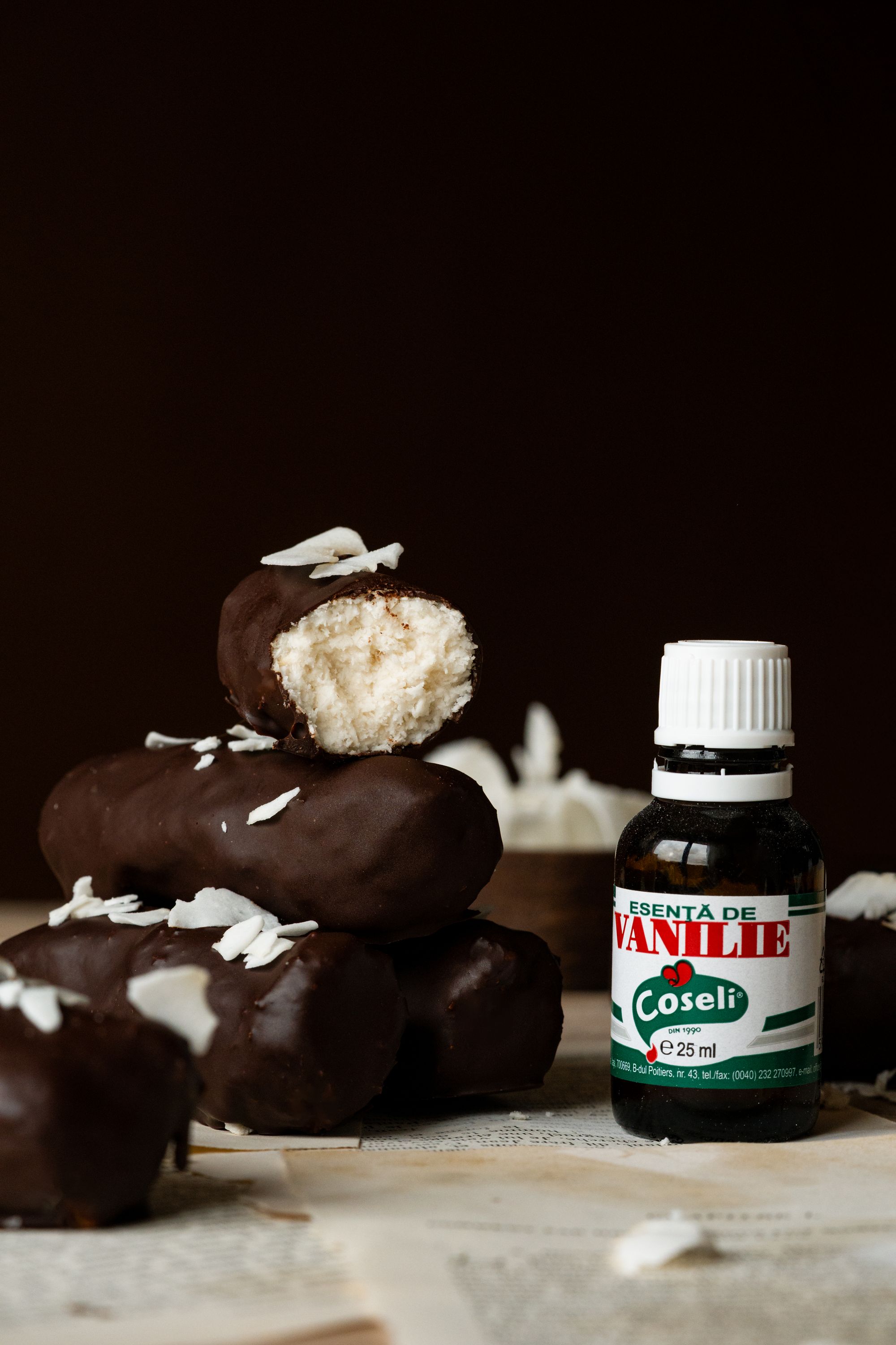 - Formează batoanele: modelează manual sau într-o formă mică, dă-le forma clasică de Bounty.