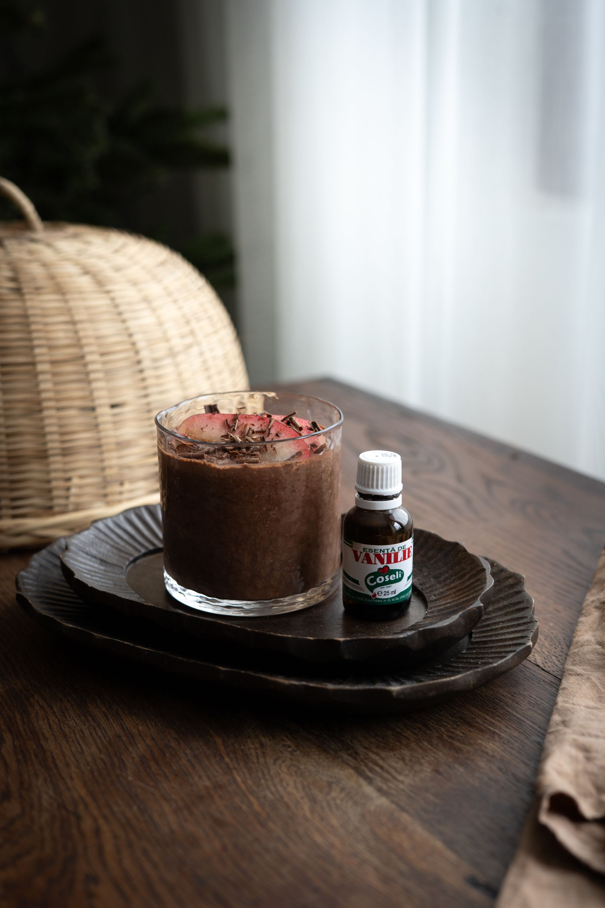 - 1 porție pudră proteică - 20–25 g, vanilie sau ciocolată