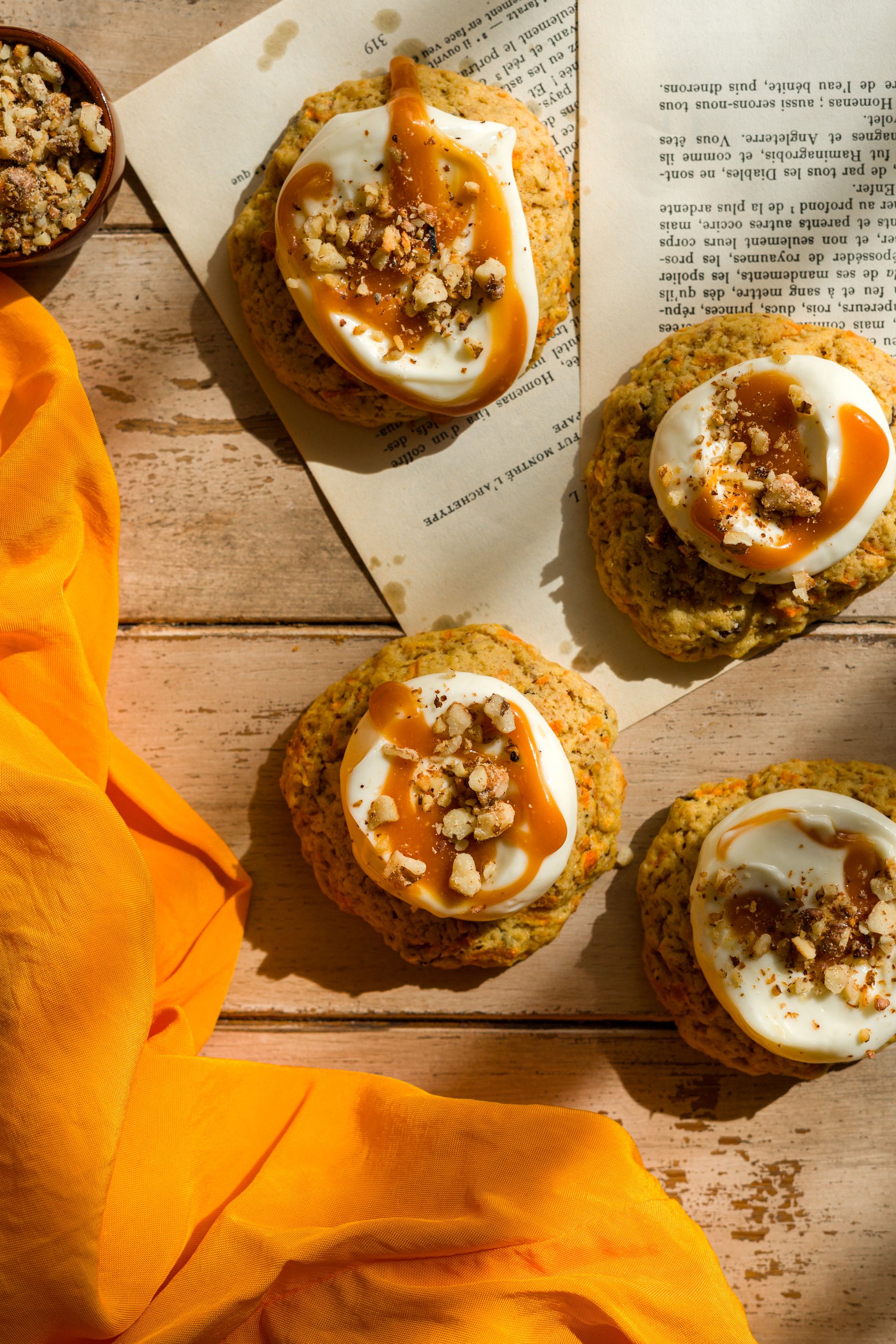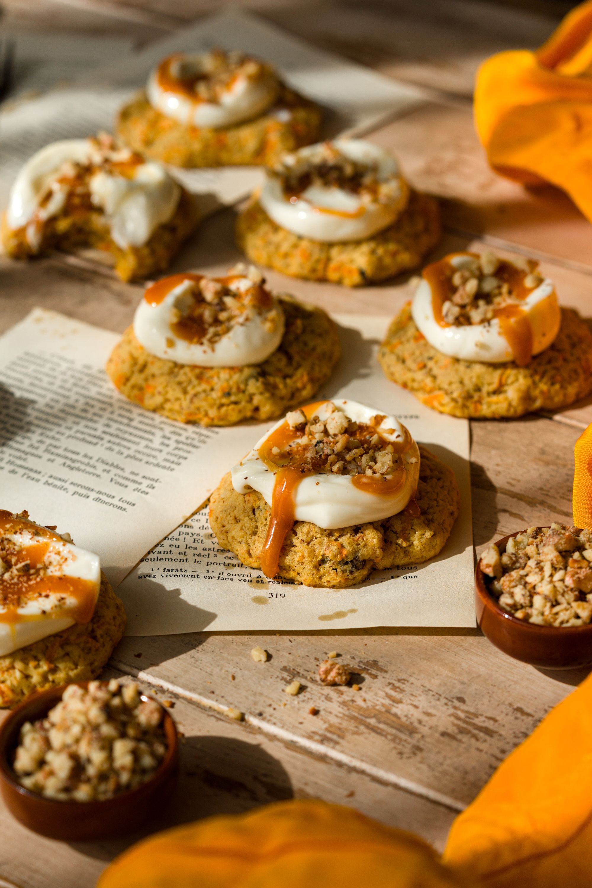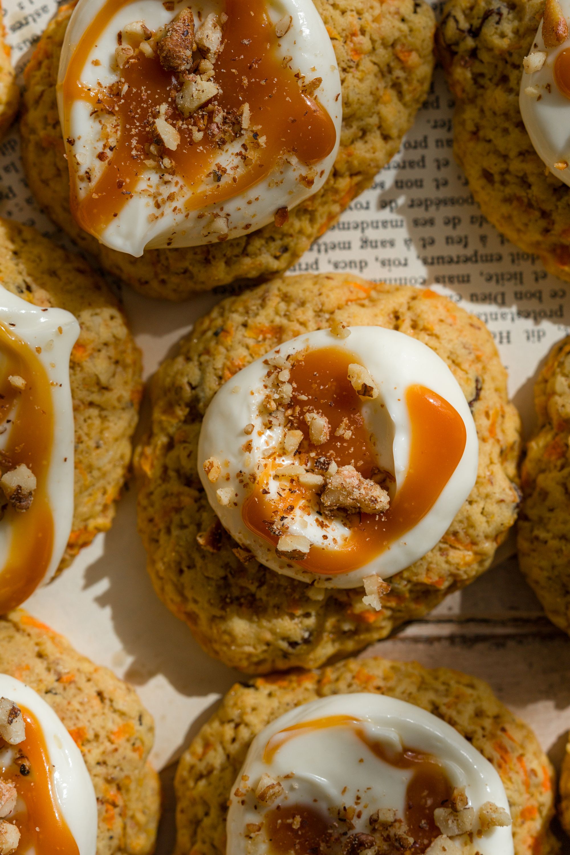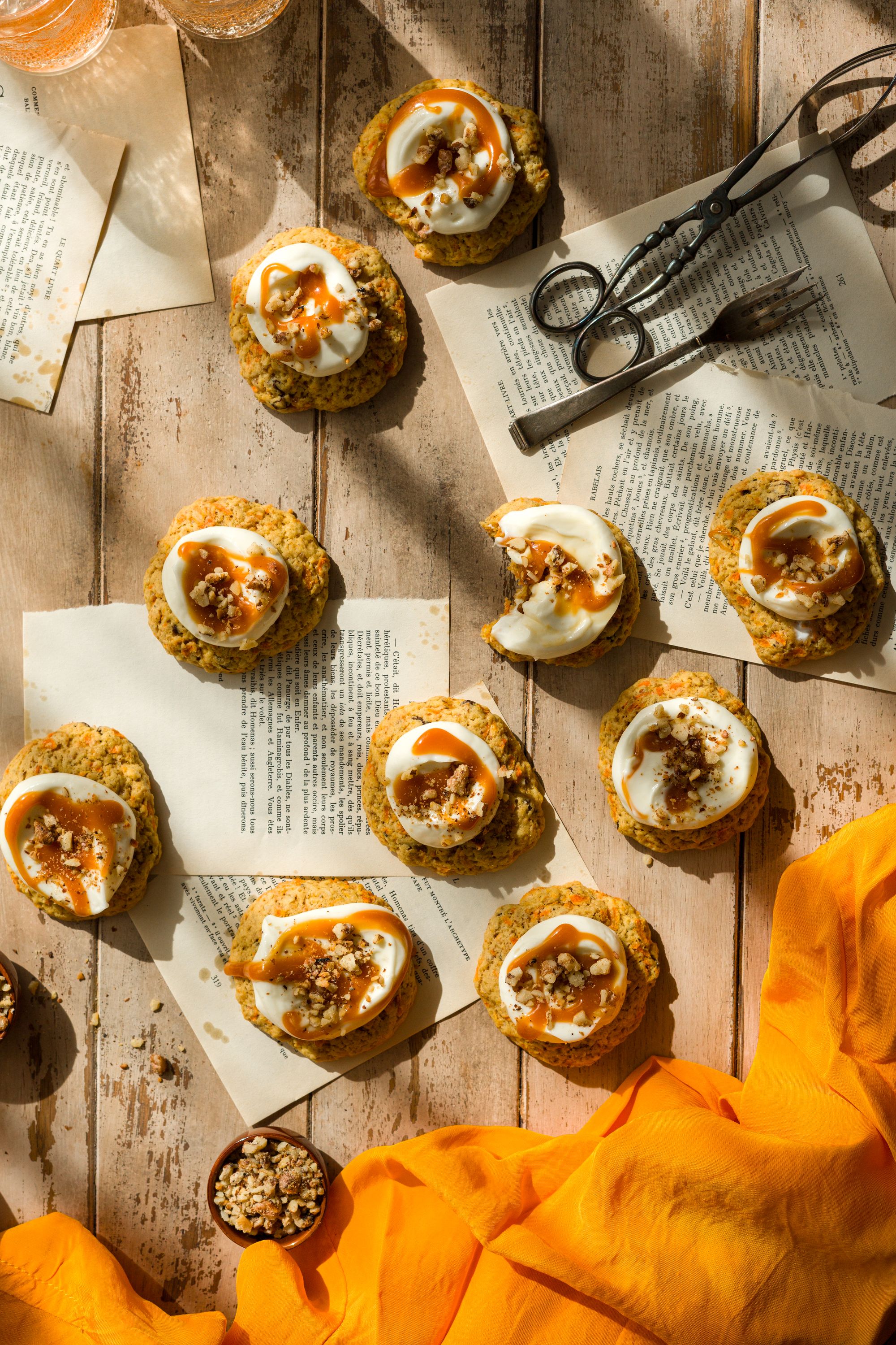 Carrot cake cookies cu cremă de brânză și caramel sărat