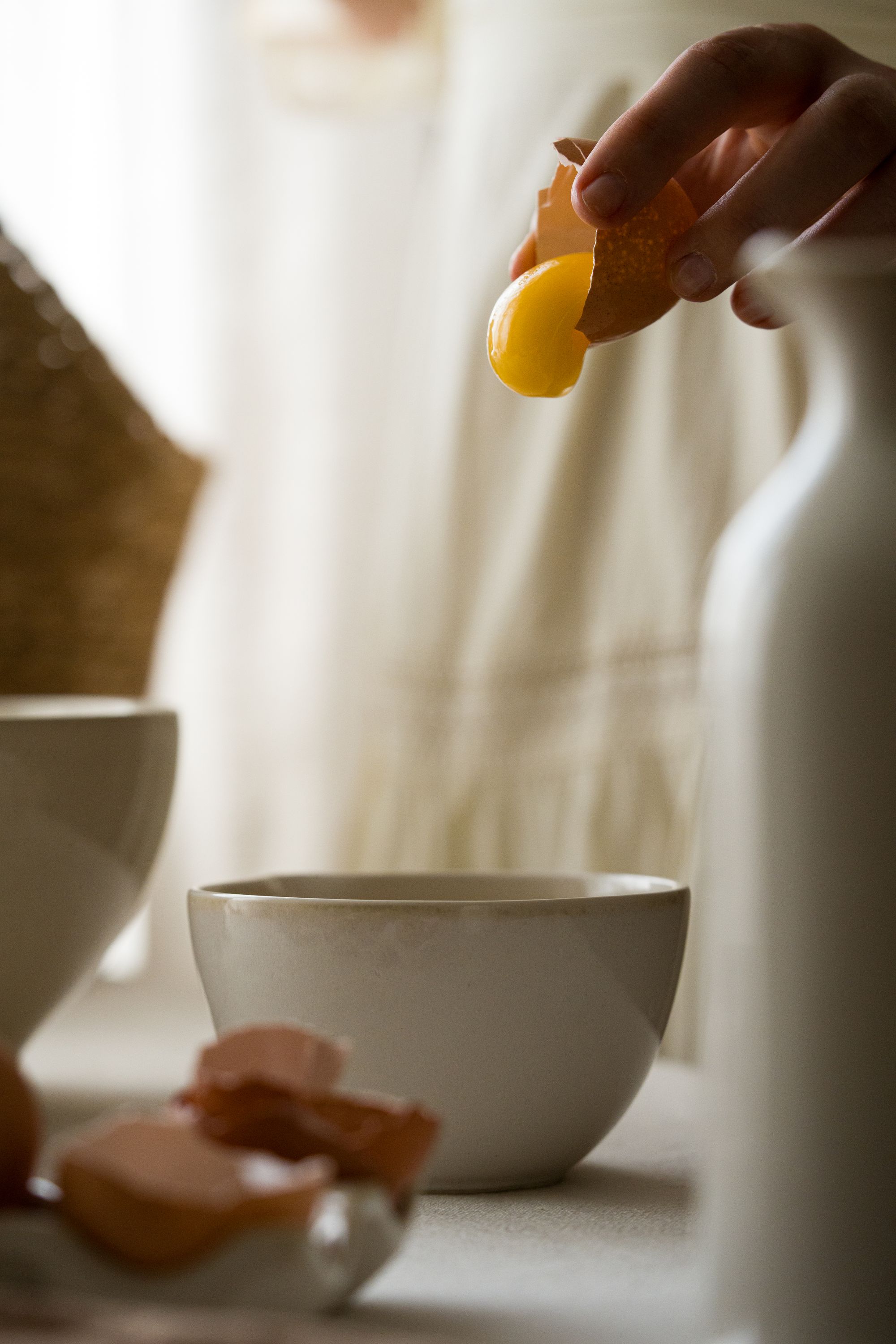Bați bine și gălbenușurile separat, iar apoi leîncorporezi ușor, cu o spatulă, cu mișcări lente.