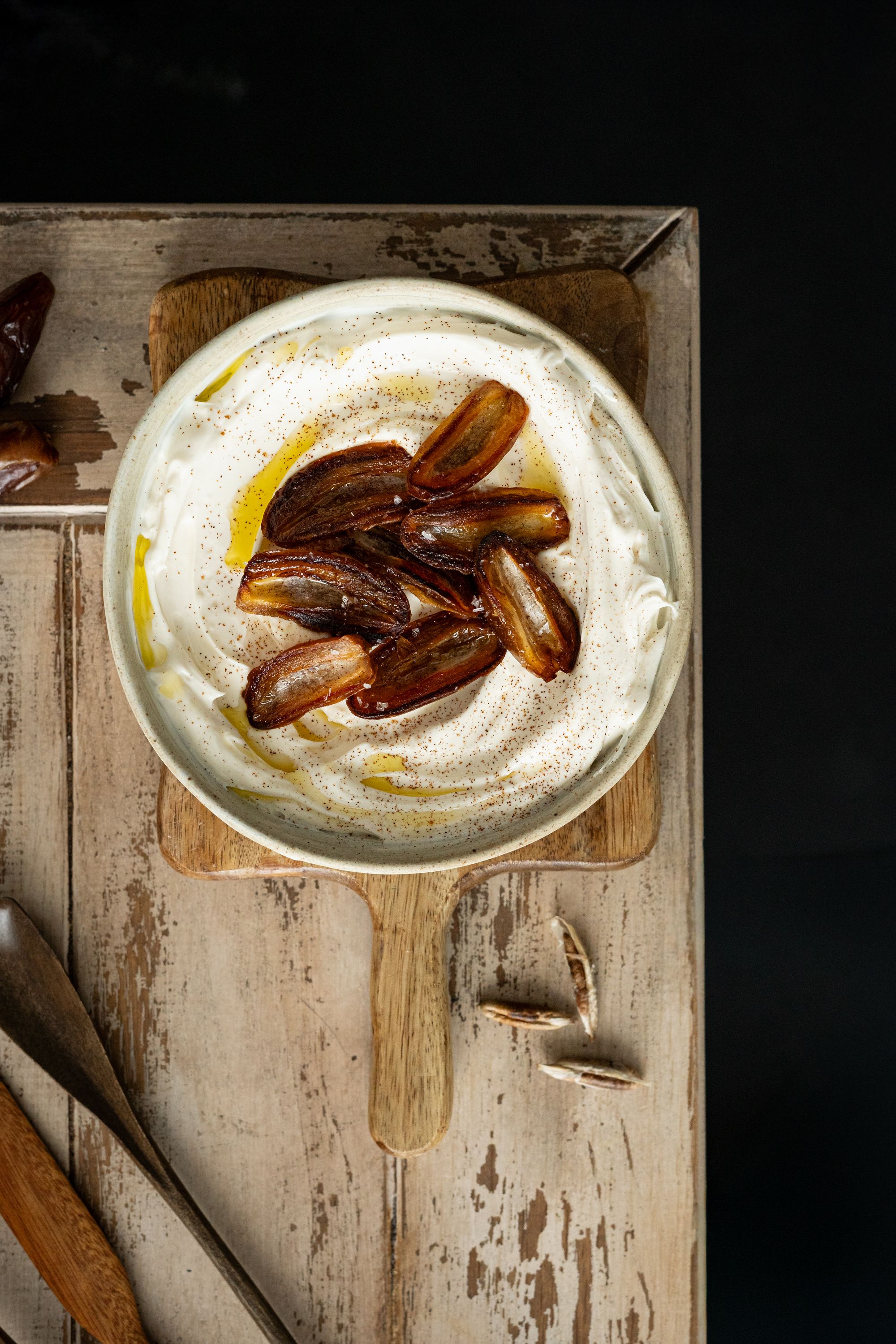 - Pune peste iaurt curmalele calde.